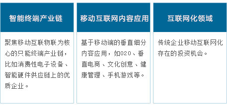 云創(chuàng)資本的投資領(lǐng)域主要集中在移動(dòng)互聯(lián)產(chǎn)業(yè)(智能終端產(chǎn)業(yè)鏈、移動(dòng)互聯(lián)內(nèi)容及應(yīng)用、傳統(tǒng)企業(yè)互聯(lián)網(wǎng)化領(lǐng)域),投資目標(biāo)是成長(zhǎng)型、創(chuàng)新型優(yōu)質(zhì)企業(yè)。