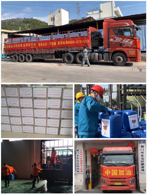 2月9日下午5點,13噸消毒劑由云倉配司機全程配送,從福建漳州出發(fā),18小時長途奔馳,于10日上午安全送達湖北荊門。